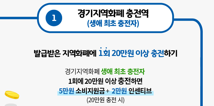 경기지역화폐를 이번에 처음으로 충전해보신다! 그러면 20만원 이상 충전하시면 5만원의 경기도 소비지원금과 2만원 인센티브를 받게됩니다.