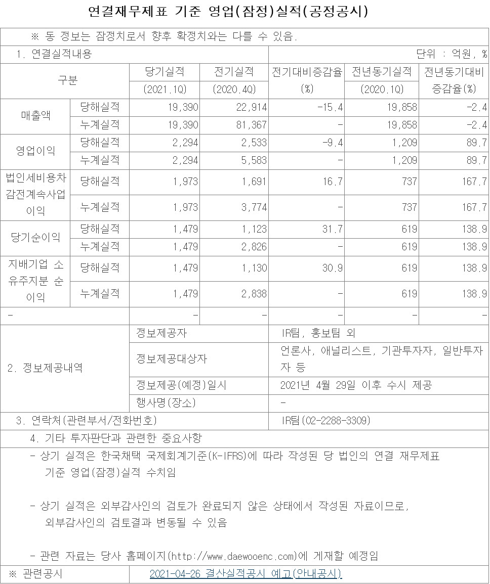 대우건설 잠정영업실적공시