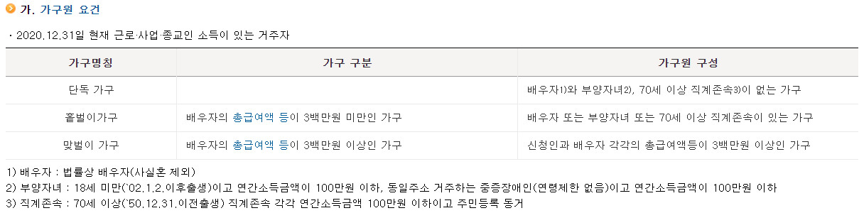 근로장려금 가구원 요건이란 3가지로 분류됩니다.
