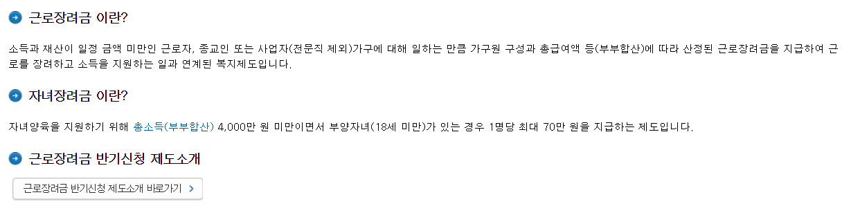 근로장려금 신청자격 확인 바로가기