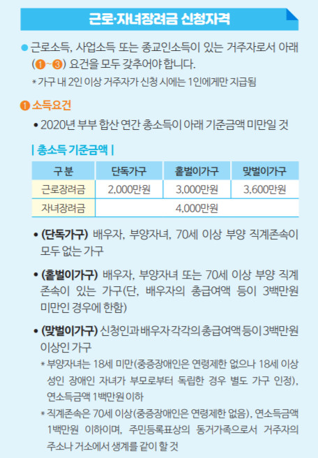 근로장려금 신청자격