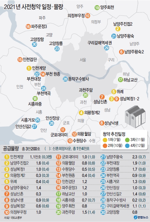 4차 : 남양주 왕숙, 부천 대장, 고양 창릉, 부천 역곡, 시흥 거모, 안산 장상, 안산 신길2, 도작구 수방사, 구리 갈매 역세권, 고양 장항