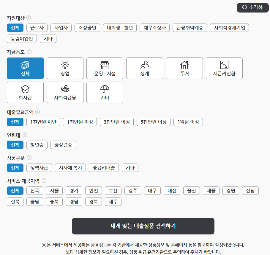 위 홈페이지는 공식 서민금융진흥원 홈페이지이며 본인에 맞는 상품을 검색하실 수 있습니다.