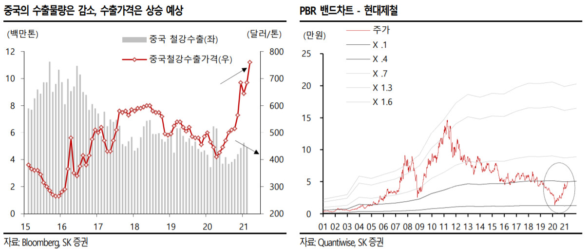 또한 중국에서 철강 수출 증치세(부가가치세) 규모 축소와 감산 조치가 이루어지면서 철강 업황이 더욱 강화될 것으로 보입니다. 중국 철강 증치세 규모가 줄어들면 저가 중국산 제품이 감소하게됩니다. 이로 인해 품질이 뛰어난 국내 업체들의 반사이익이 나타날 가능성이 높습니다. 실제로 기업들도 이 같은 상황을 고려해 철강제품 가격을 계속 올리고 있는 상황입니다.