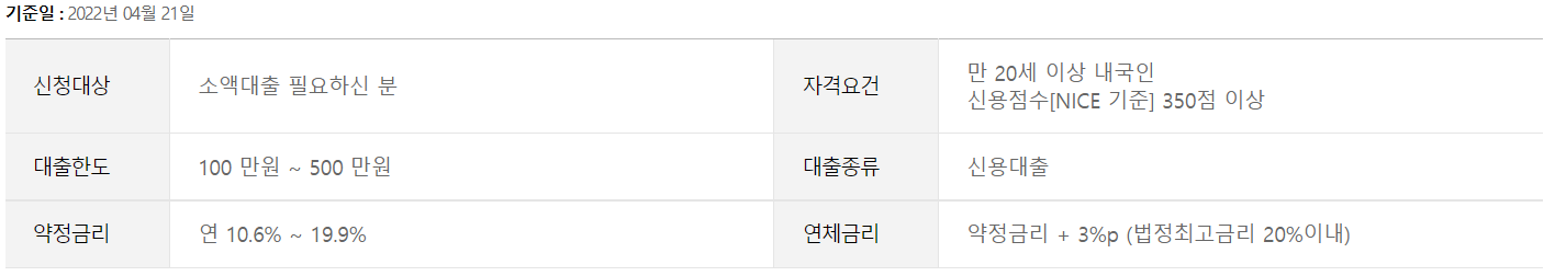 | 대출 자격 | 만 20세 이상, 신용 점수 350점 이상 |
